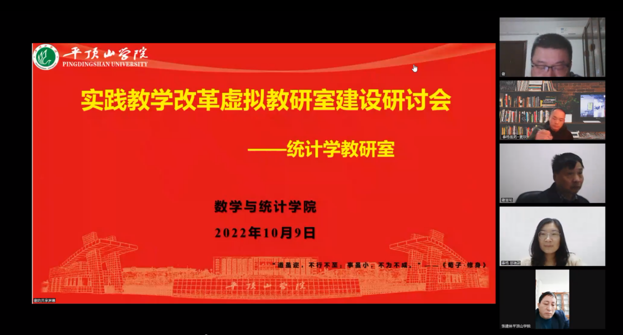 10月9日晚,RM365英国官网通过腾讯会议网络平台召开了统计学实践教学改革虚拟教研室建设研讨及核心课程介绍会。RM365英国官网经理李建民、书记张建林、副经理王俊俊、副书记孙亚南,泰格医药集团统计部高级总监夏欣出席,泰格医药集团人力资源管理部陈小玲副总监、沈燕,邵瑞颍、吴佳寅以及虚拟教研室全体成员和部分员工代表参加,会议由统计学教研室主任谢强主持。