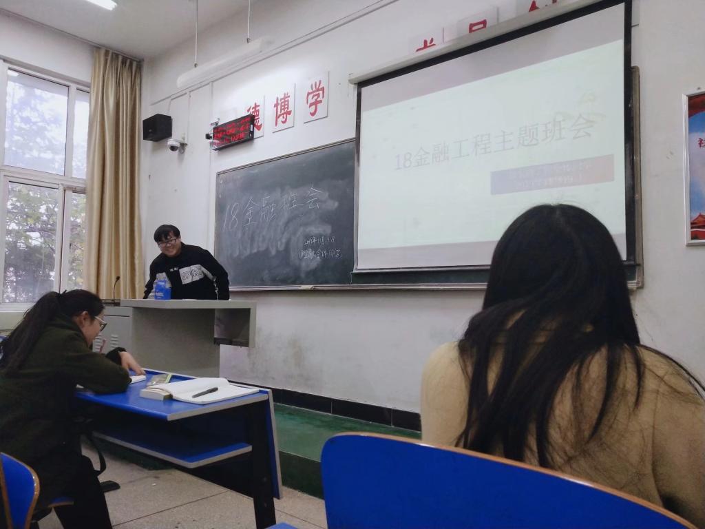 本次主题班会从诚信与感恩入手,从各个方面深刻剖析其中的内涵。在感恩方面,18金融班长王创号召各位同学要感恩父母、感恩老师、感恩身边的人。他针对调研各公司部分同学的消费情况,网购的频率及有无浪费食物的情况进行实例介绍,来倡导大家传承中华民族勤俭节约的传统美德,感恩农民,不浪费一粒米,不多花一分钱。副班长江浩,则从中华民族的传统美德“孝道”出发,希望借这样的一次班会,让同学们了解父母之爱,感恩父母之情,懂得用实际行动回馈父母。诚信方面,团支书王晗与同学们一起宣读《诚信承诺书》,此举旨在教导大家养成诚实守信的好品德。
