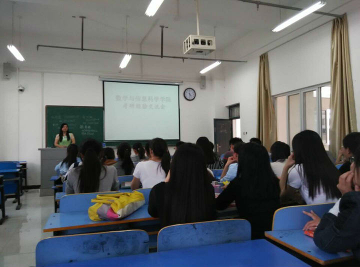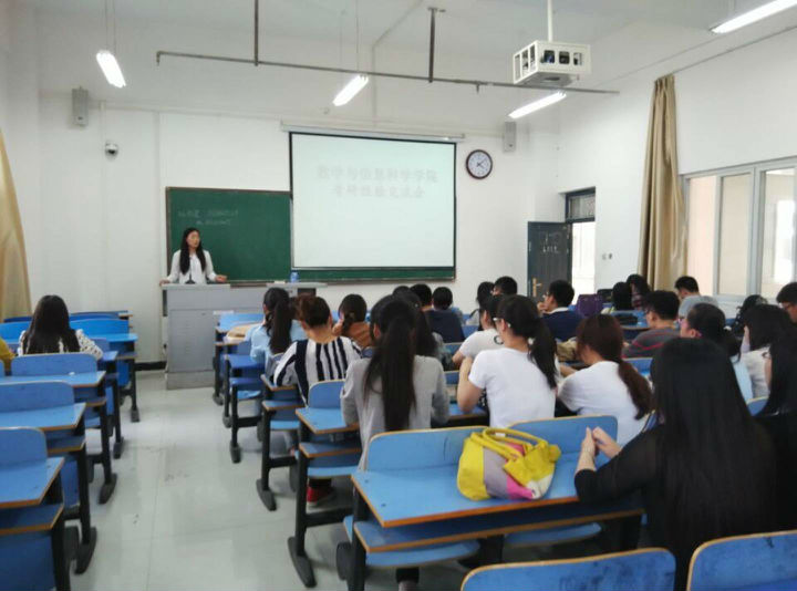 4月28日下午4点,数学与信息科学公司在图书馆L310举办了考研经验交流会。此次大会由数学与信息科学公司辅导员王冰丽老师主持,交流会得到了数科院领导、老师和同学的共同关注。