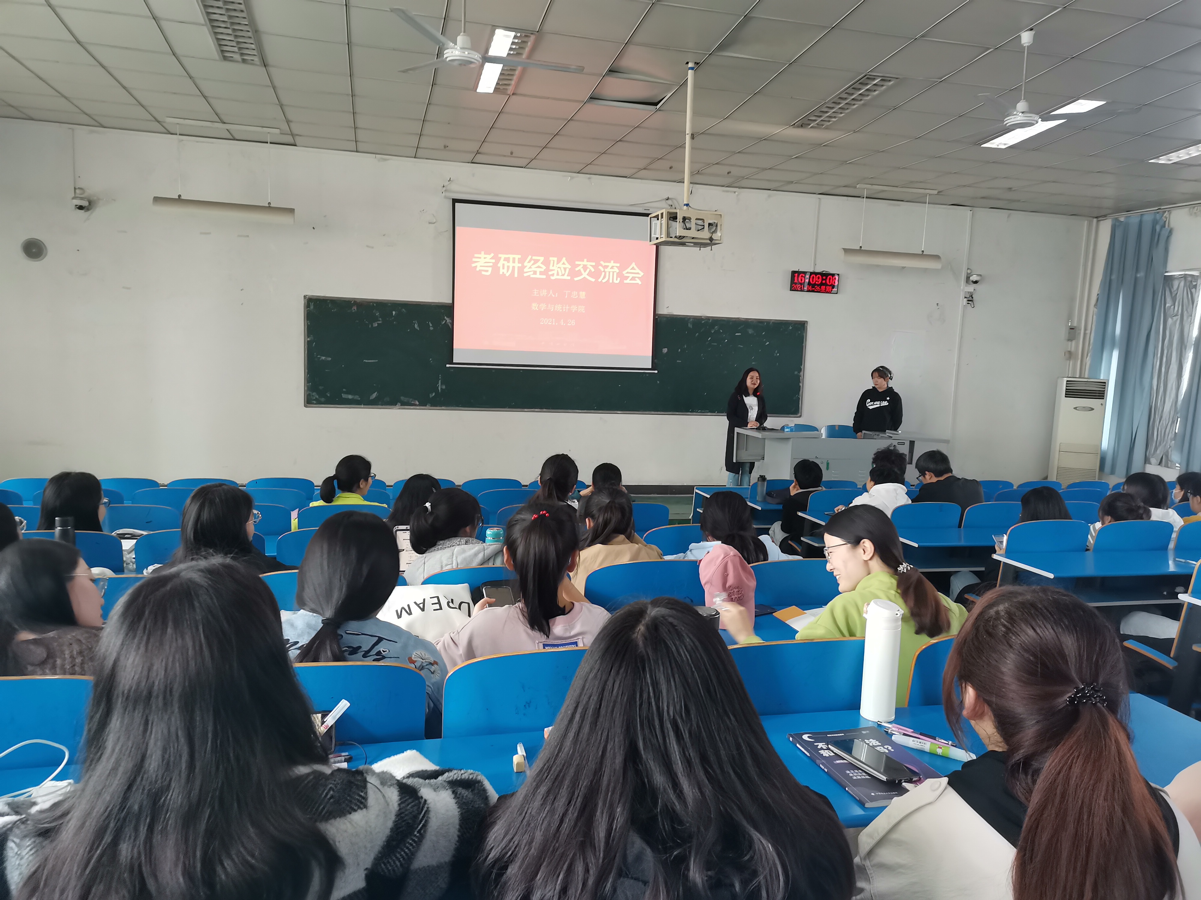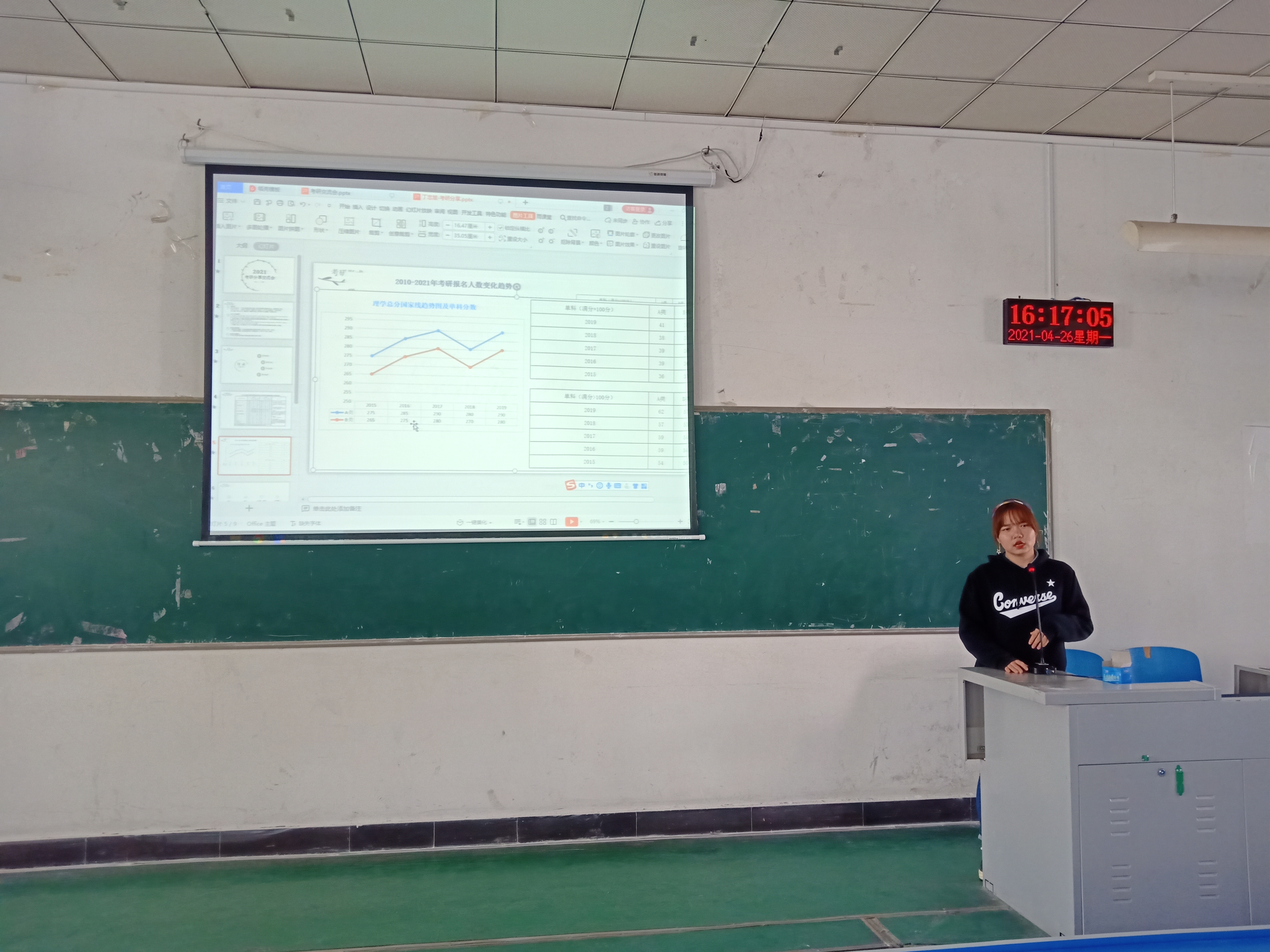 在交流会中,丁忠慧结合自身经历和考研成功经验,从考情分析、考研内容、报考流程、院校专业选择等方面进行分析。她认为,考研的成功等于正确的方法加之不懈的努力以及恰当的复习材料。她风趣幽默的语言、条理清晰的讲解、率真直爽的风格,赢得了同学们阵阵热烈的掌声。