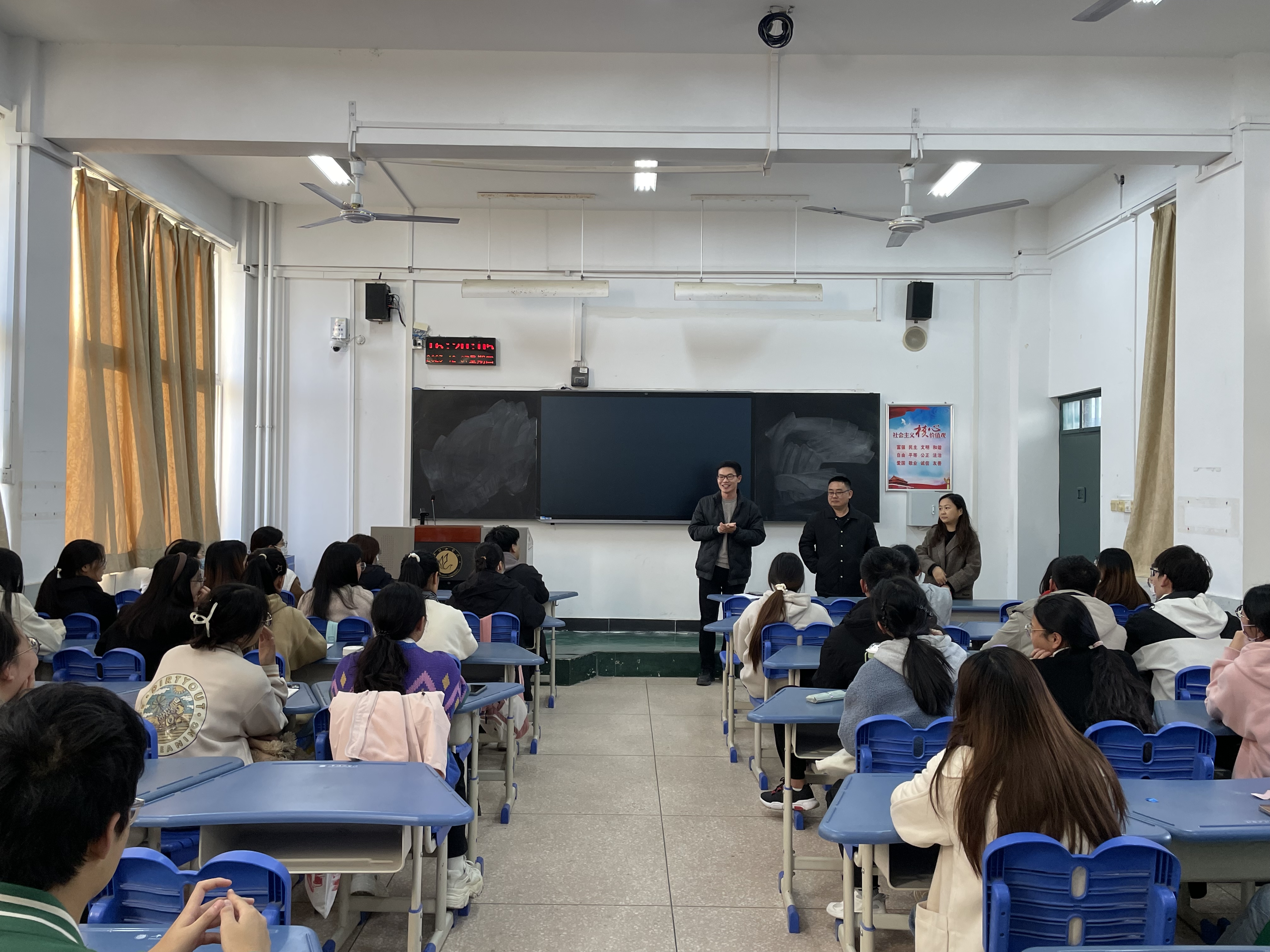 座谈会上,各班员工代表就近期同学们关注的课程安排、学科竞赛、考研事项等方面进行了提问。老师们耐心解答,并指明同学们下一步的进展方向,建议大家通过“日、周、月”的计划来规划日常学习,保持学习的积极性,培养良好的学习习惯,找到适合自身的学习方法。