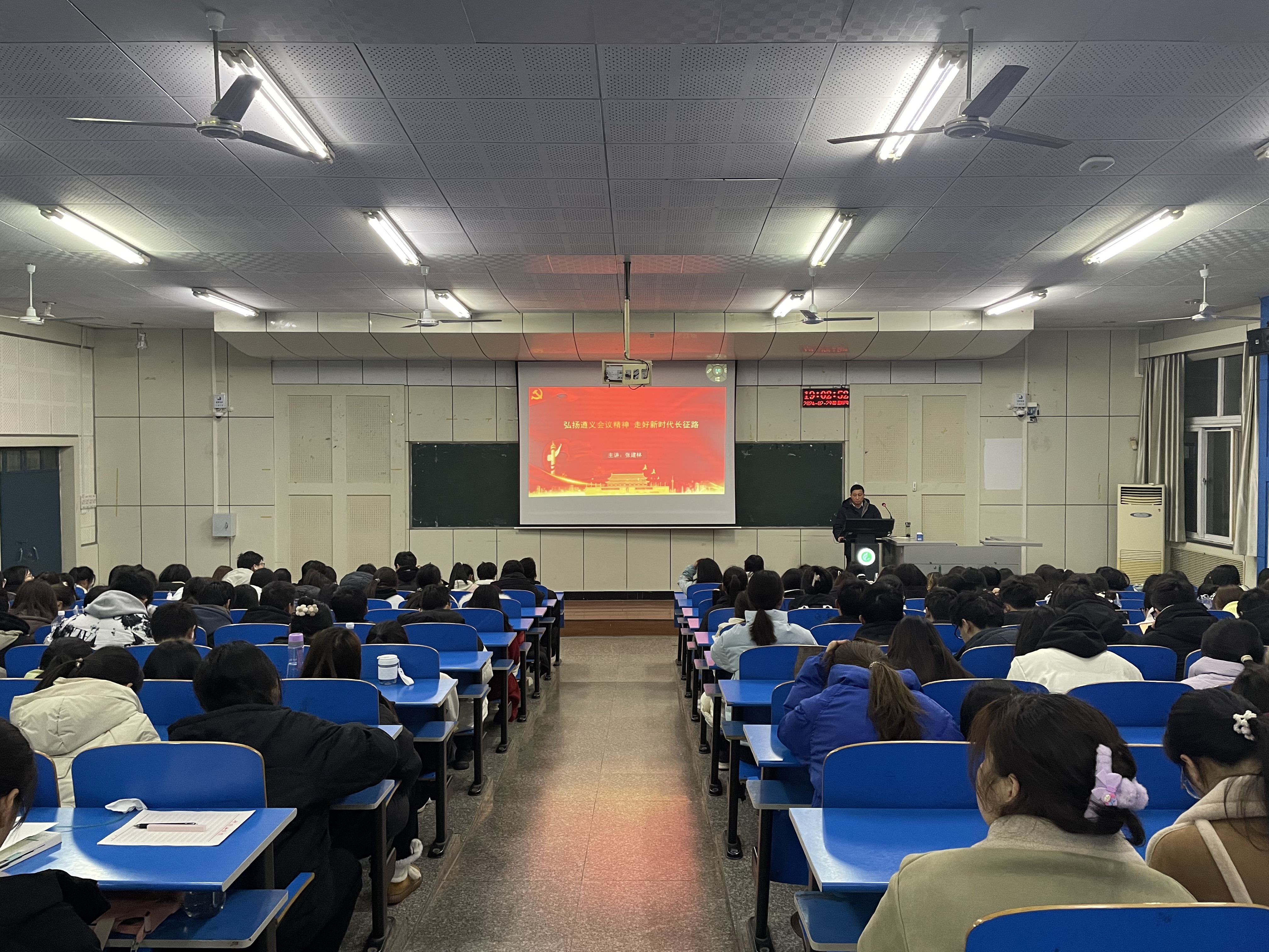 张建林紧扣“坚定信念、坚持真理、独立自主、团结统一”的遵义会议精神,通过详实的资料和深入地解析,围绕遵义会议的历史背景、会议内容、历史地位以及精神内涵四个方面,向在场员工讲述了遵义会议的基本过程和历史意义。这次会议是中国共产党历史上一个极其重要的时刻,标志着中国共产党第一次独立自主地运用马克思列宁主义基本原理解决自己的路线、方针和政策方面的问题。讲座中,张建林指出,同学们应学习弘扬遵义会议精神,坚定理想信念,脚踏实地,努力学习,肩扛时代使命,无惧风雨,勇毅前行,在新时代的长征路上创造属于这一代人的辉煌!