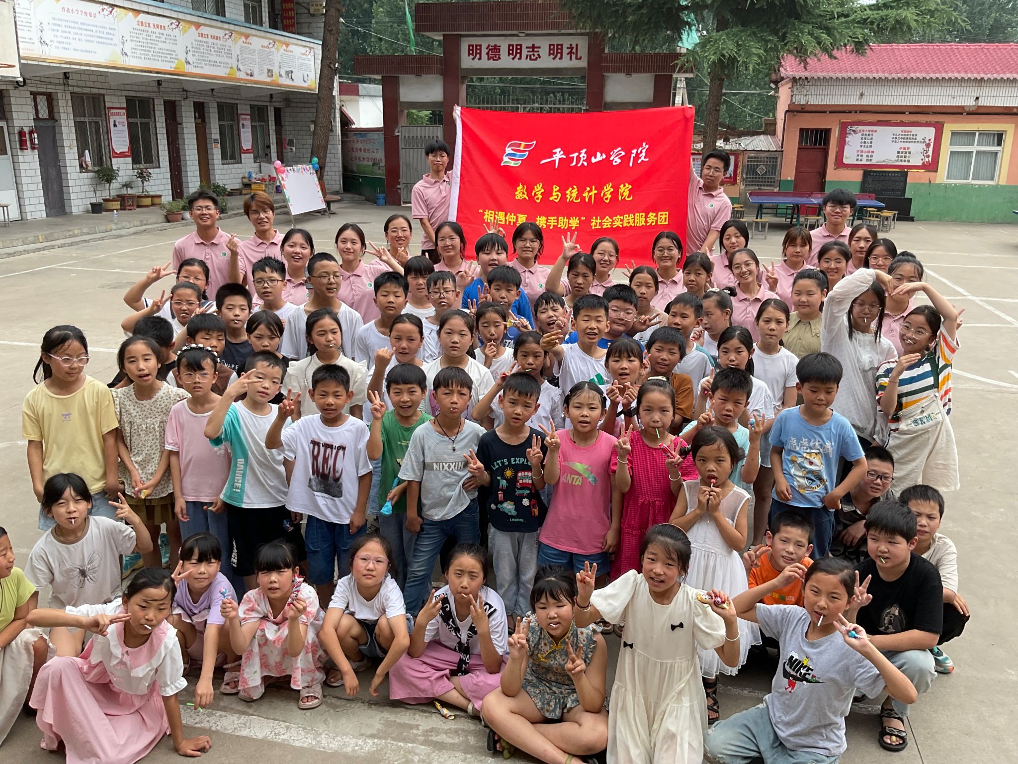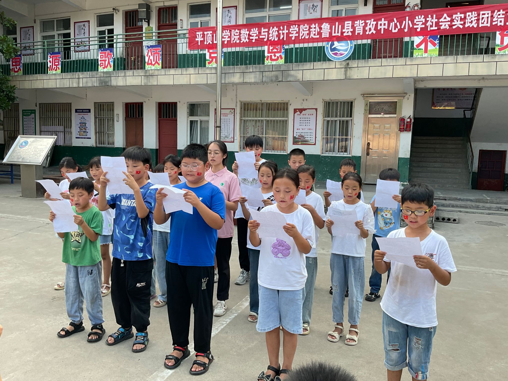时光总是过得那么快,转眼间,RM365英国官网“相遇仲夏·携手助学”社会实践团的志愿服务活动就到了尾声,实践团于鲁山县背孜中心小学举行了暑期三下乡结业典礼,为期两周的社会实践活动就此落下帷幕。实践团指导老师李睿智、全体志愿者以及七十余名员工和家长代表参加,由志愿者李天浩、周佳欣主持。