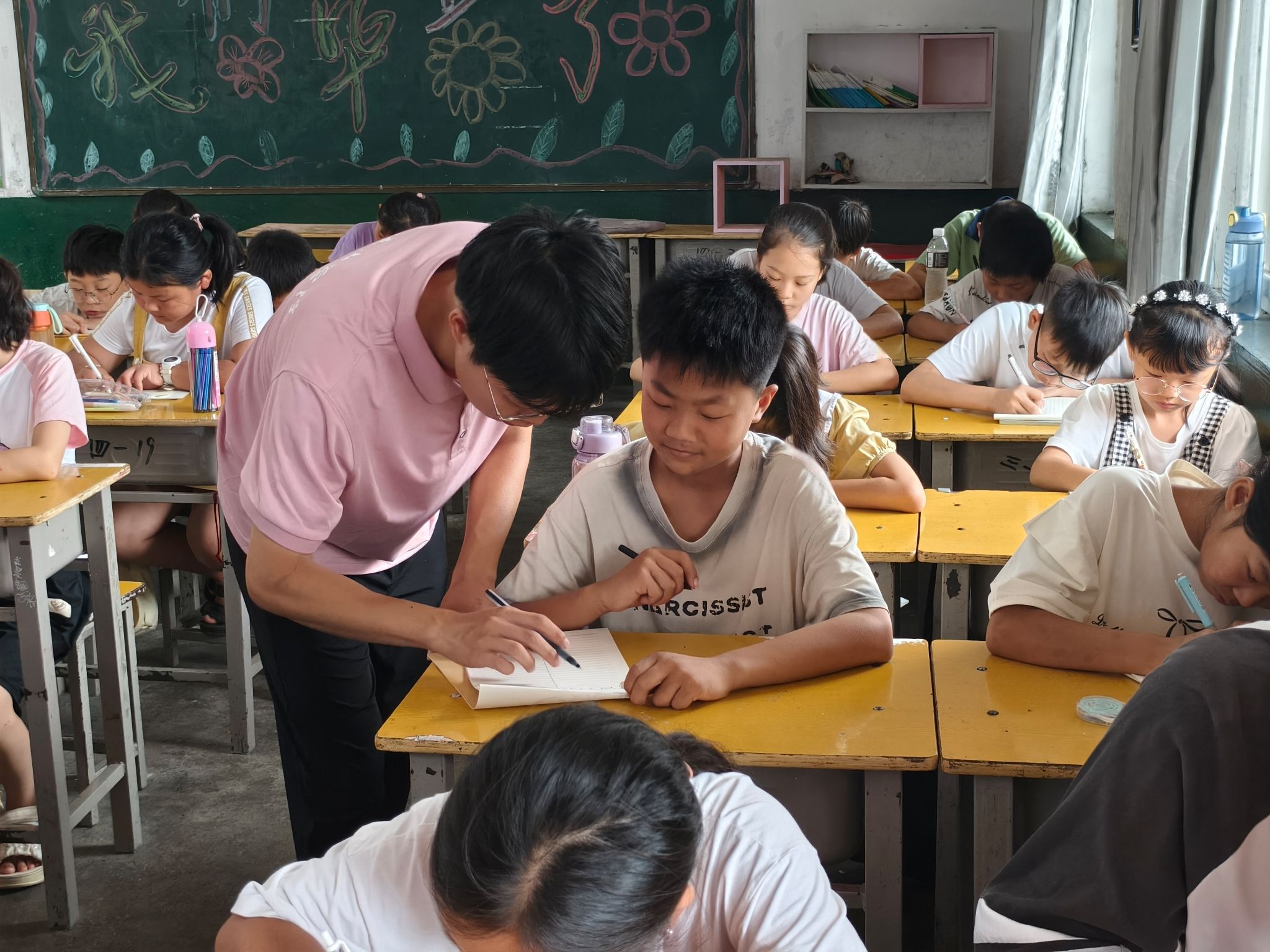 墨香千年,笔韵传情。书法课亦是必不可少的美育课程之一,志愿者从写字姿势、握笔姿势、汉字书写的笔顺规则讲起,一瞥一捺,皆是意境,又从书法的三大要素笔法、结构和章法讲解书写时的要领。书法不仅仅是文字的艺术表现形式,更是中华文化的传承载体,通过书法,感受文化的厚重与情感的真挚。