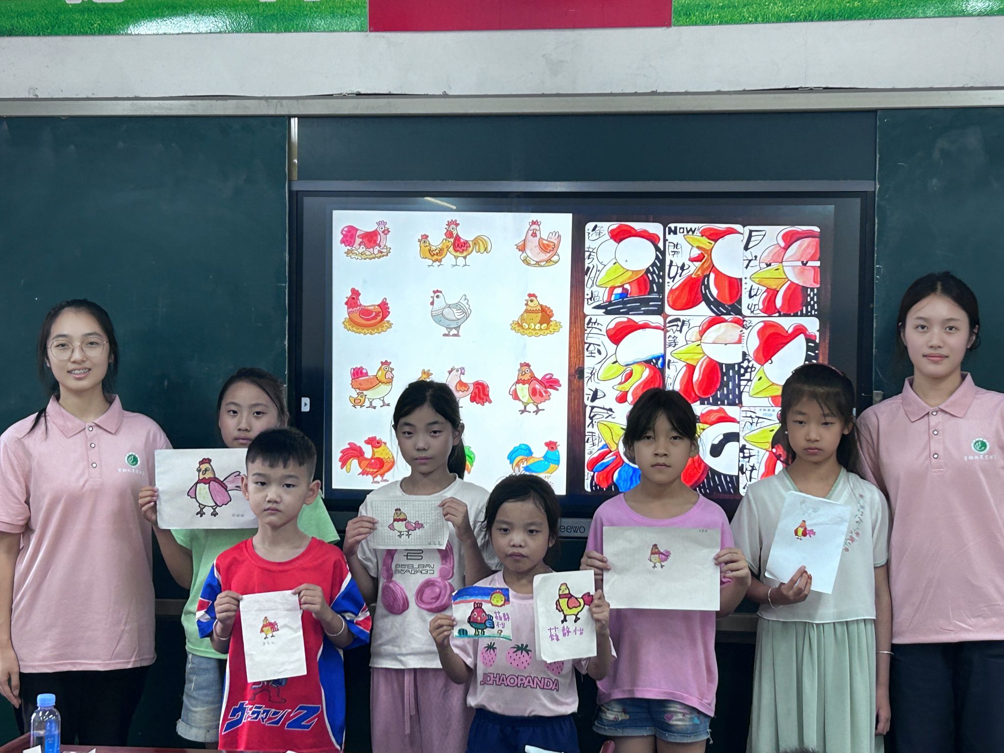 在课堂上,志愿者从构图、起型、轮廓勾勒、细节刻画和调整完整五个方面向员工们讲解了如何画好一幅画。志愿者又向员工们举例,用线条的流畅性,体现公鸡的生机与活力;用鲜明的色彩,突出公鸡的活泼与生动,以此来帮助员工们更好学习美术。