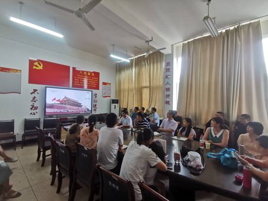 随后,大家集体观看了中国共产党100周年庆典,党委书记张建林领学了习近平总书记重要讲话的精髓要点。庄严热烈的庆典,习近平总书记铿锵有力的讲话,在党员教师中引起了热烈反响和强烈的共鸣。大家一致认为,习近平总书记的重要讲话深刻总结了党团结带领人民围绕实现中华民族伟大复兴的主题创造的彪炳史册的伟大成就,深刻揭示了中国共产党的精神之源和政治品格,坚定表明领导亿万人民在新时代创造新的历史辉煌的决心和信心,必将激励和鼓舞全党全军全国各族人民继往开来、奋勇前进。
