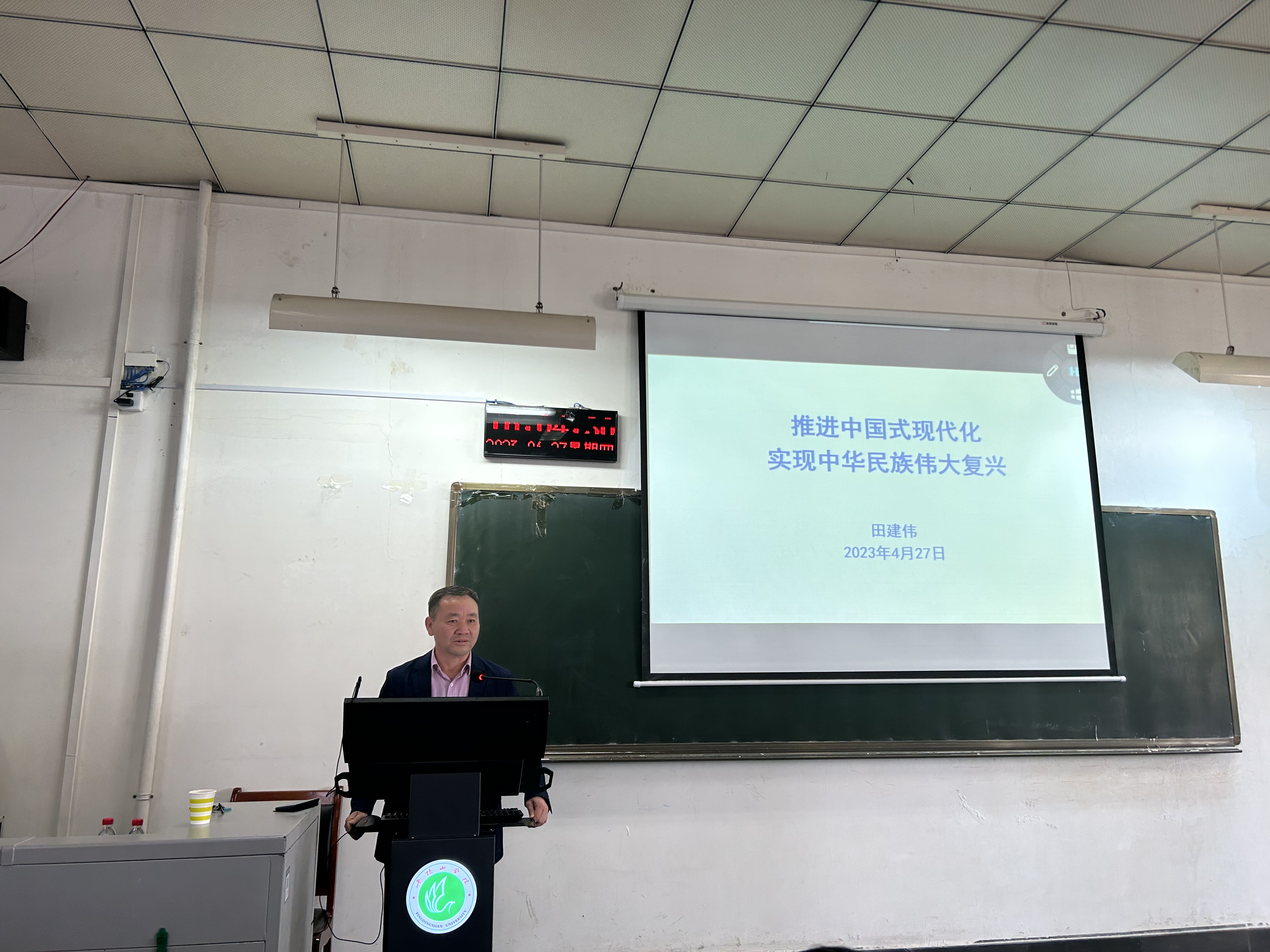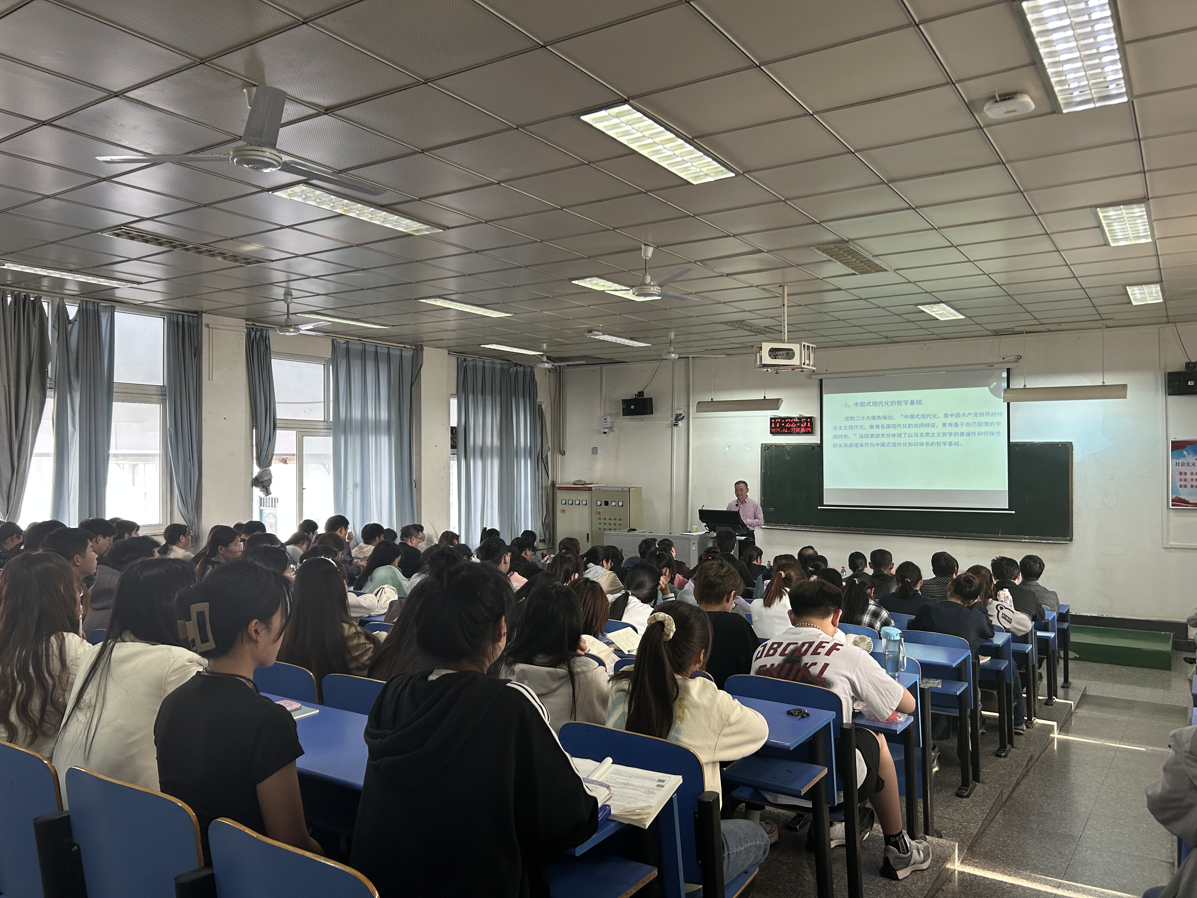 授课过程中,田建伟通过真实数据、鲜活案例和国内外时政热点与师生热切交流,他强调,中国式现代化是中国共产党领导的社会主义现代化,新征程上,我们必须坚持战略定力,始终坚持以中国式现代化全面推进中华民族伟大复兴,创造更大的辉煌。