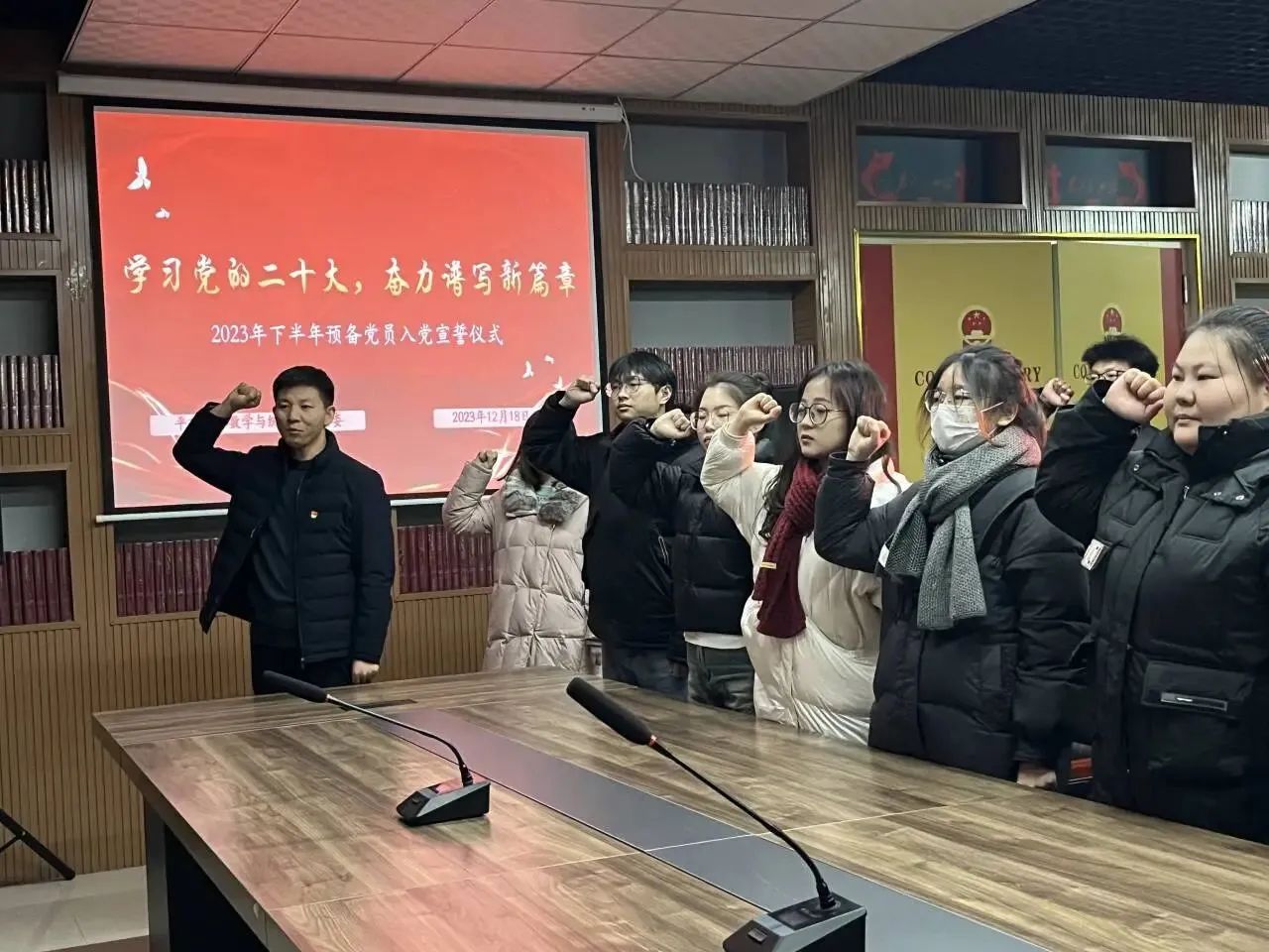 参观结束后,举行新党员入党宣誓仪式暨老党员重温入党誓词活动。孙亚南对新发展党员同志表示祝贺和欢迎,并对在座党员同志提出了建议和要求:一是要加强理论学习,进一步端正入党动机。不仅组织上入党,更要思想上入党,通过学习,进一步加深对党的性质宗旨的认识,进一步纯洁入党动机和目的,站稳政治立场,自觉抵制错误政治观点。二是践行入党誓言,发挥先锋模范作用。坚决贯彻执行党的路线、方针、政策,在学习、工作、生活中努力发挥党员先锋表率作用。三是增强组织观念,自觉接受党员群众监督。自觉参加主题党日活动、党员大会、组织生活会等,按时交纳党费,履行党员义务,进行批评与自我批评,保持党员的先进性与纯洁性。同时,孙亚南鼓励入党积极分子勤于思考,从党史中汲取智慧,积极向党组织靠拢,以实际行动争取早日成为一名合格的中国共产党员。