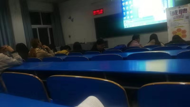 介绍了公司情况和拟招聘职位后,在1106教室进行了面试,深受毕业生欢迎。