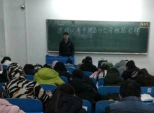 10月27日晚,建信人寿股份有限公司前来公司举行专场招聘会,此次招聘会共设工作岗位6个,共有85名同学参加。