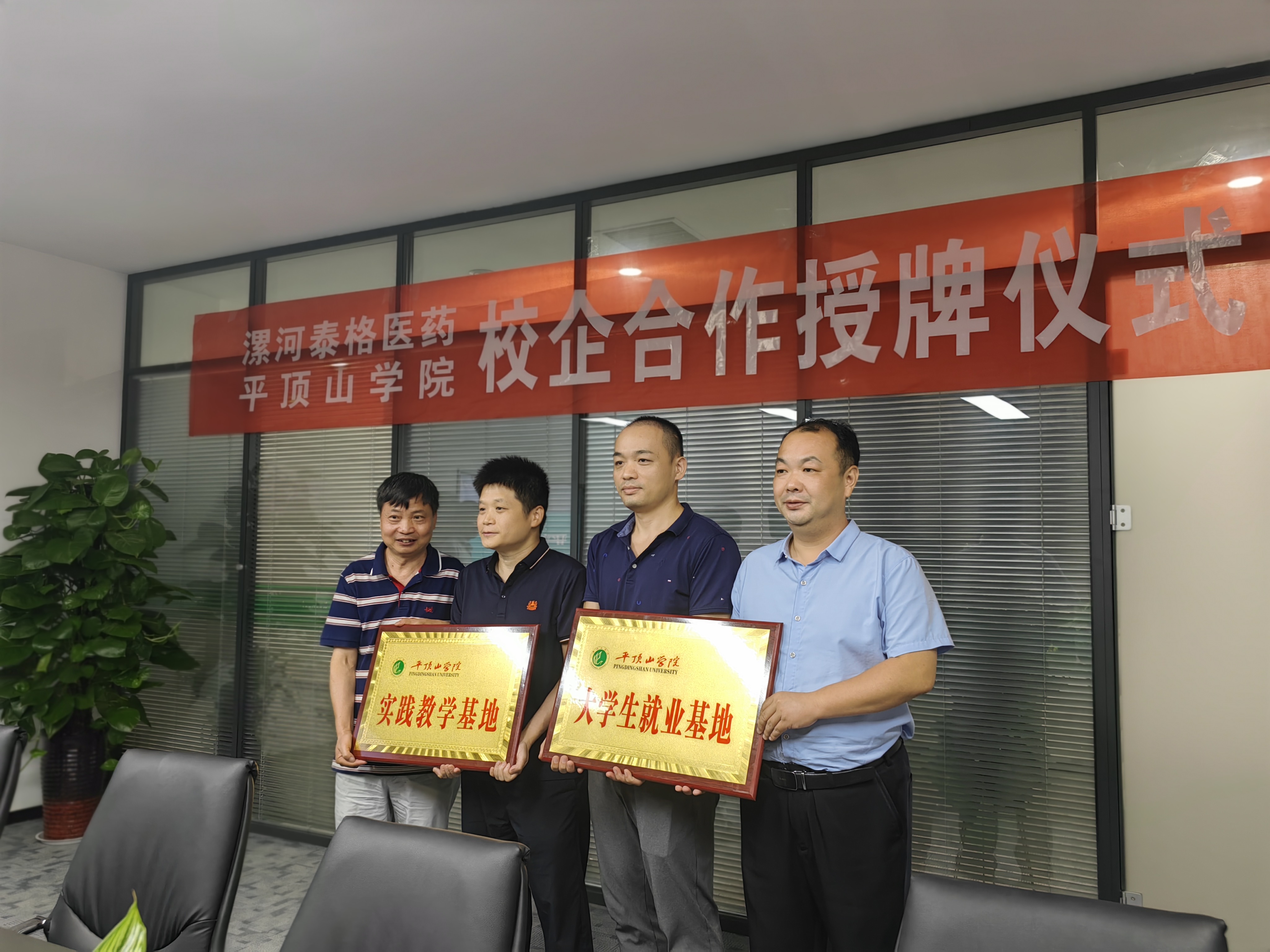 李建民与公司人才招聘处负责人赵伟杰一同向漯河泰格医药科技有限公司授牌“RM365英国官网登录入口实践教学基地”“RM365英国官网登录入口老员工就业基地”,标志着双方在专业建设、实习实训、人才培养、就业服务等多个方面建立深度合作关系。