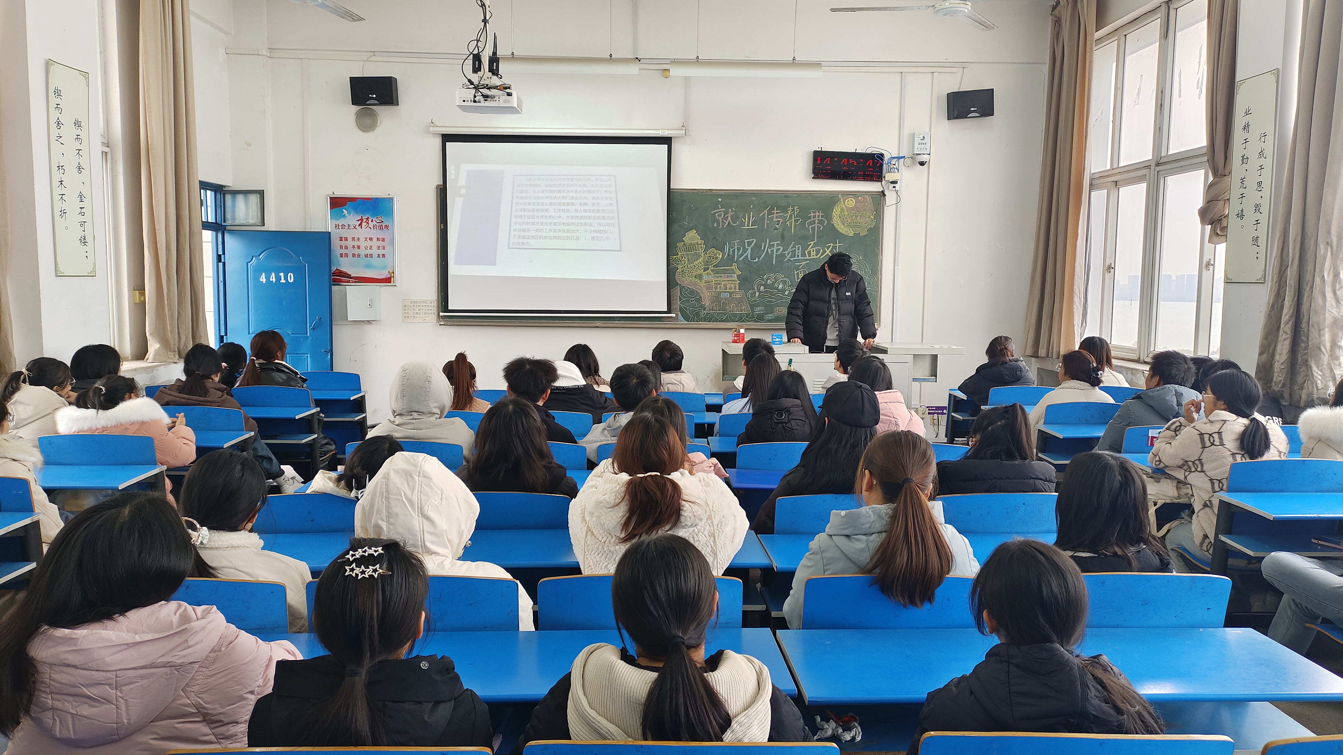 马雨欣结合自身参加特岗教师的经历,为学弟学妹们分析了当前师范生就业的大环境,并介绍了就业的相关注意事项,她提醒员工要及时关注并掌握报考信息,并提供了一些获取招教、特岗考试的方法,分享了考试技巧。最后,她嘱托大家,无论是在实习、代课还是在校学习,都要保持好心态,珍惜当下,实现学习最大化。