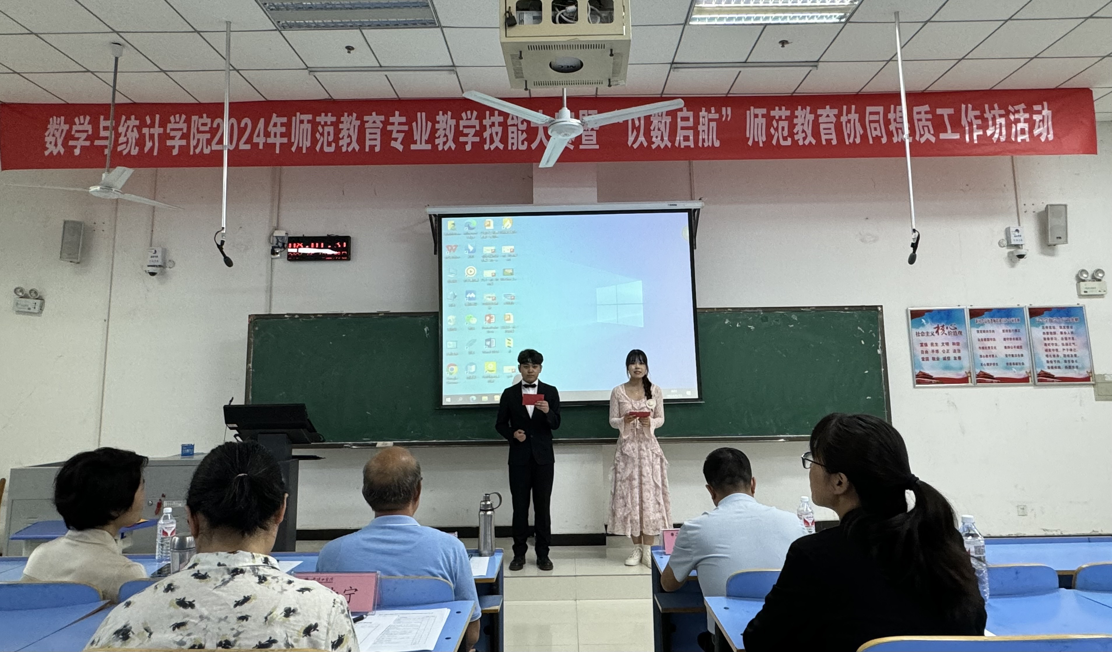为深化我院师范生教学技能的培养,提升人才培养质量,遴选优秀选手参加集团第二十届师范教育专业教学技能大赛,5月12日下午,数学与统计公司在图书馆208举办第二届师范教育专业教学技能大赛暨“以数启航”师范教育协同提质工作坊活动,师范专业部分员工观摩了比赛。