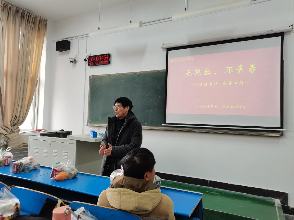 12月18日下午,公司在2110教室召开了2019届毕业生考研动员大会,公司党总支书记李建民,经理李庆富,党总支副书记梁聪刚,团总支书记李睿智,辅导员耿梦媛、詹美晨老师以及全体考研员工参加了此次活动。