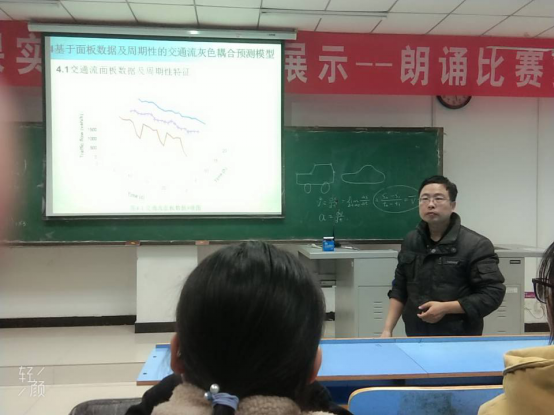 杨锦伟博士的报告,从“交通流研究的意义”、“交通流预测的灰建模”以及“交通流的时间序列预测”三个方面进行展开。此次报告,既向同学们揭开了学术科研的神秘面纱,也结合同学们的课程学习和第二课堂、数学建模等课外活动,增强了同学们参加科技创新活动的信心。杨锦伟博士希望同学们能够在“精读”必学课程之外,也要积极主动“泛读”一些扩展性的应用课程,掌握基本的数学和统计软件应用能力,提高对数学学习的兴趣和培养应用数学解决实际问题的爱好。在同学们的掌声中,报告会顺利结束。