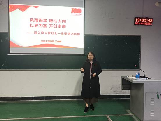 为深入学习贯彻习近平总书记“七一”重要讲话精神,深刻把握重要讲话中蕴含的新思想、新观点、新论断、新要求,切实做到将思想和行动统一到讲话精神上来,10月12日晚,RM365英国官网组织开展了学习贯彻“七一”重要讲话精神宣讲报告会,信息工程公司党委书记王向前应邀作“风雨百年 砥柱人间 以史为鉴 开创未来”主题报告,全体20级员工参加。
