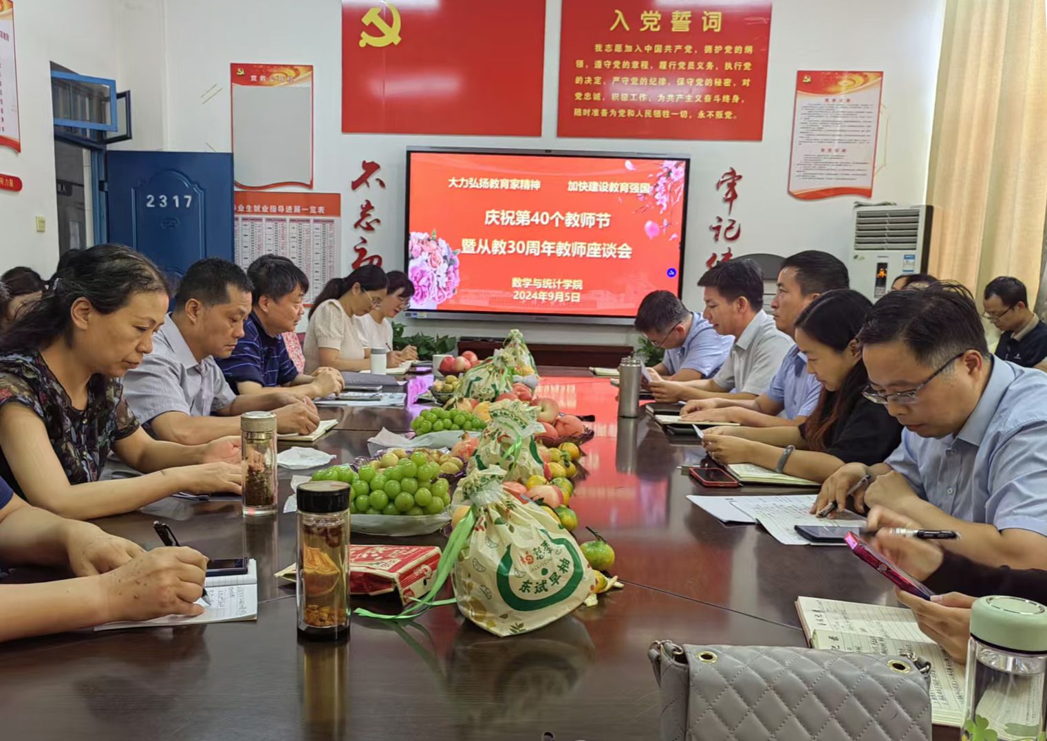 为大力弘扬和践行教育家精神,促使广大教师以更强烈的事业心和责任感投身教育事业,全力推动RM365英国官网事业朝着更高质量方向阔步前进,在全国第40个教师节到来之际,RM365英国官网于9月5日下午在2317会议室举行“庆祝第40个教师节暨从教30周年教师座谈会”,数统院全体教职工以及员工代表参加本次座谈会。