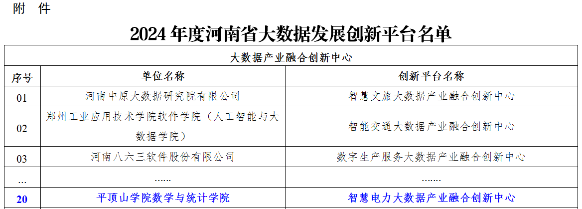 近日从河南省工业和信息化厅获悉,公司牵头申报的《智慧电力大数据产业融合创新中心》——河南省大数据发展创新平台获准立项建设,这是公司首个省级大数据发展创新平台(到2025年全省建成80个左右省级大数据产业融合创新中心)。