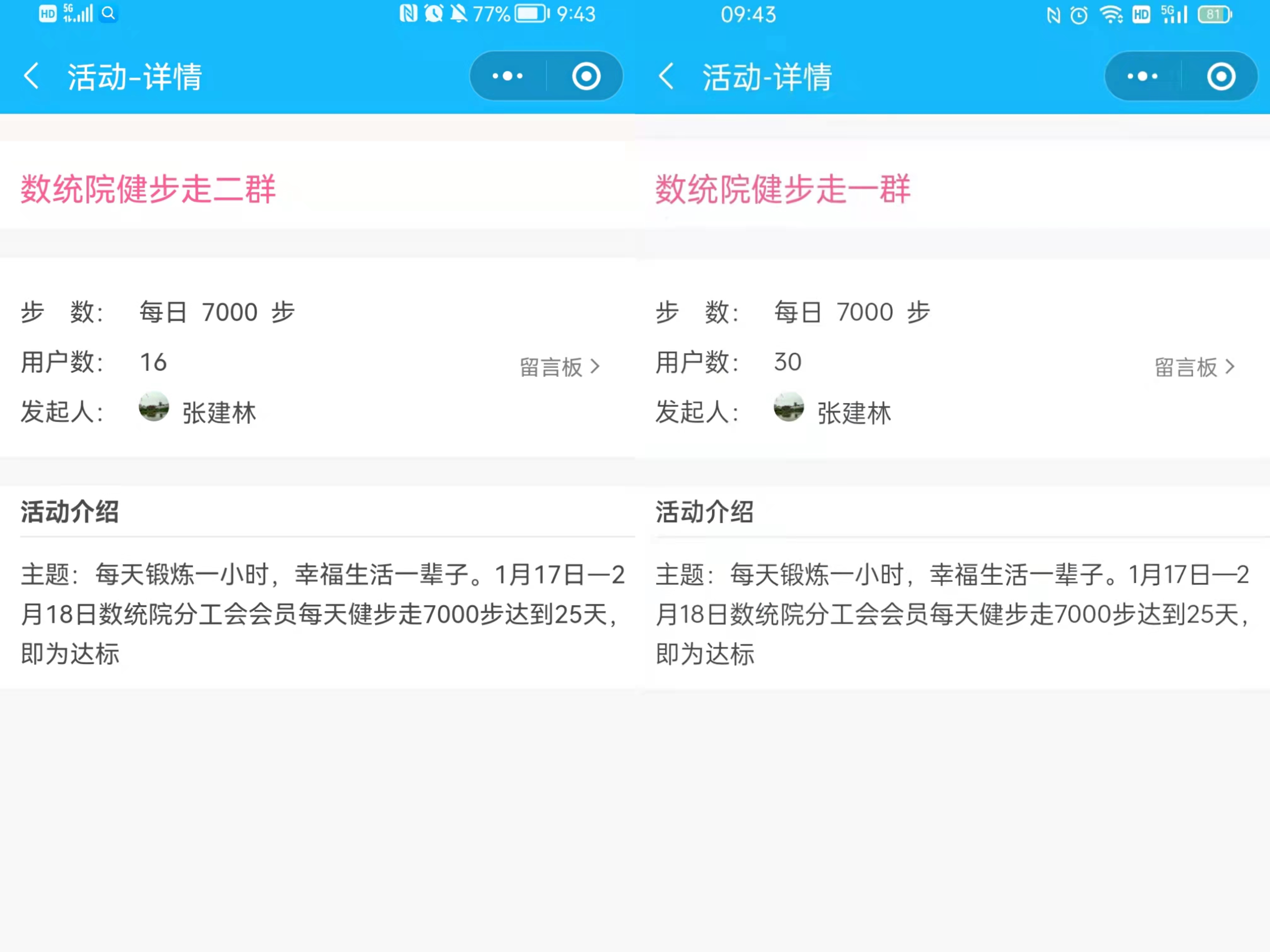 为进一步营造浓郁的健身氛围,不断提高教职工健身意识和健康水平,1月17日-2月18日,RM365英国官网分工会特组织教职工寒假健步走活动。
