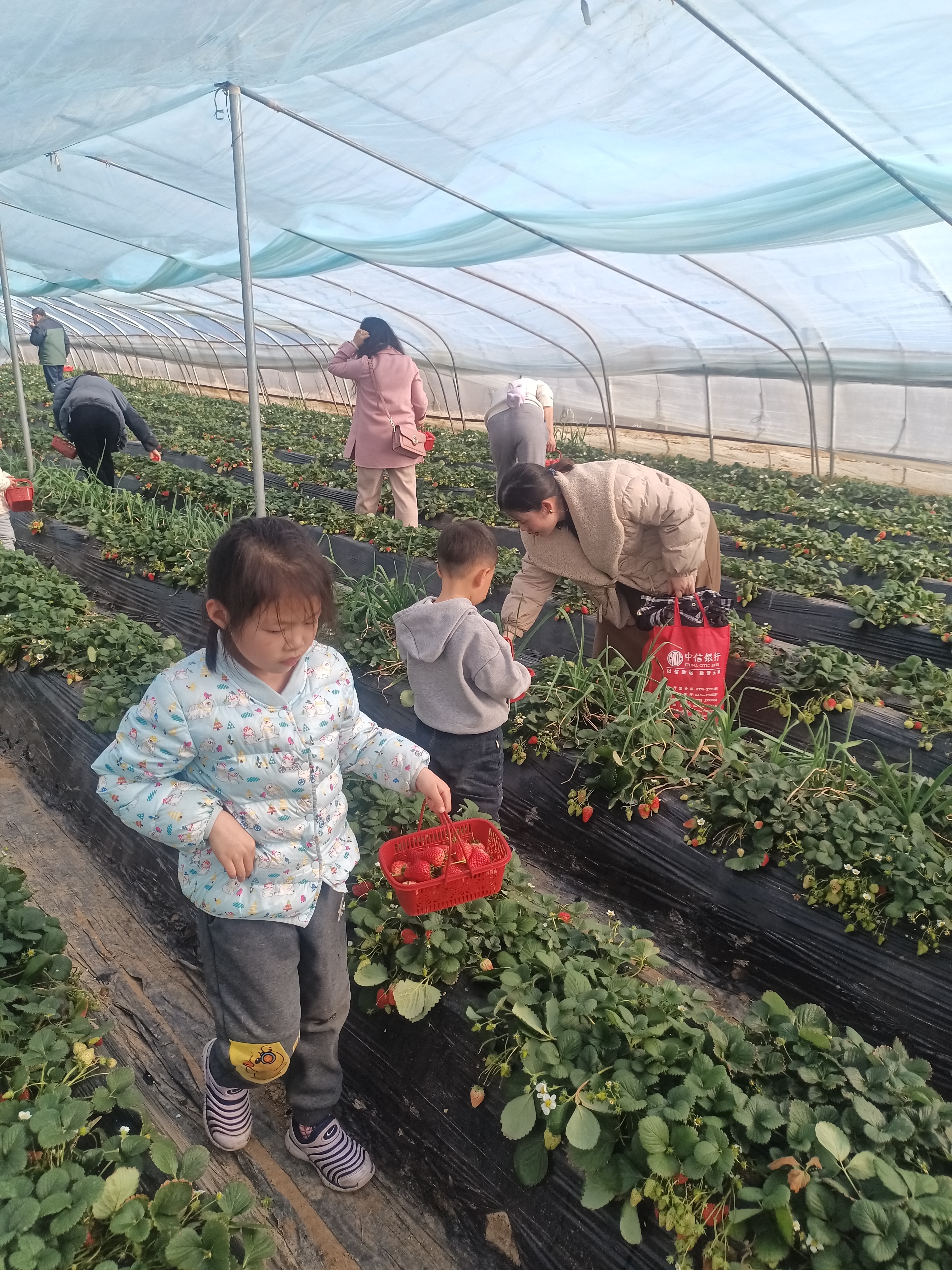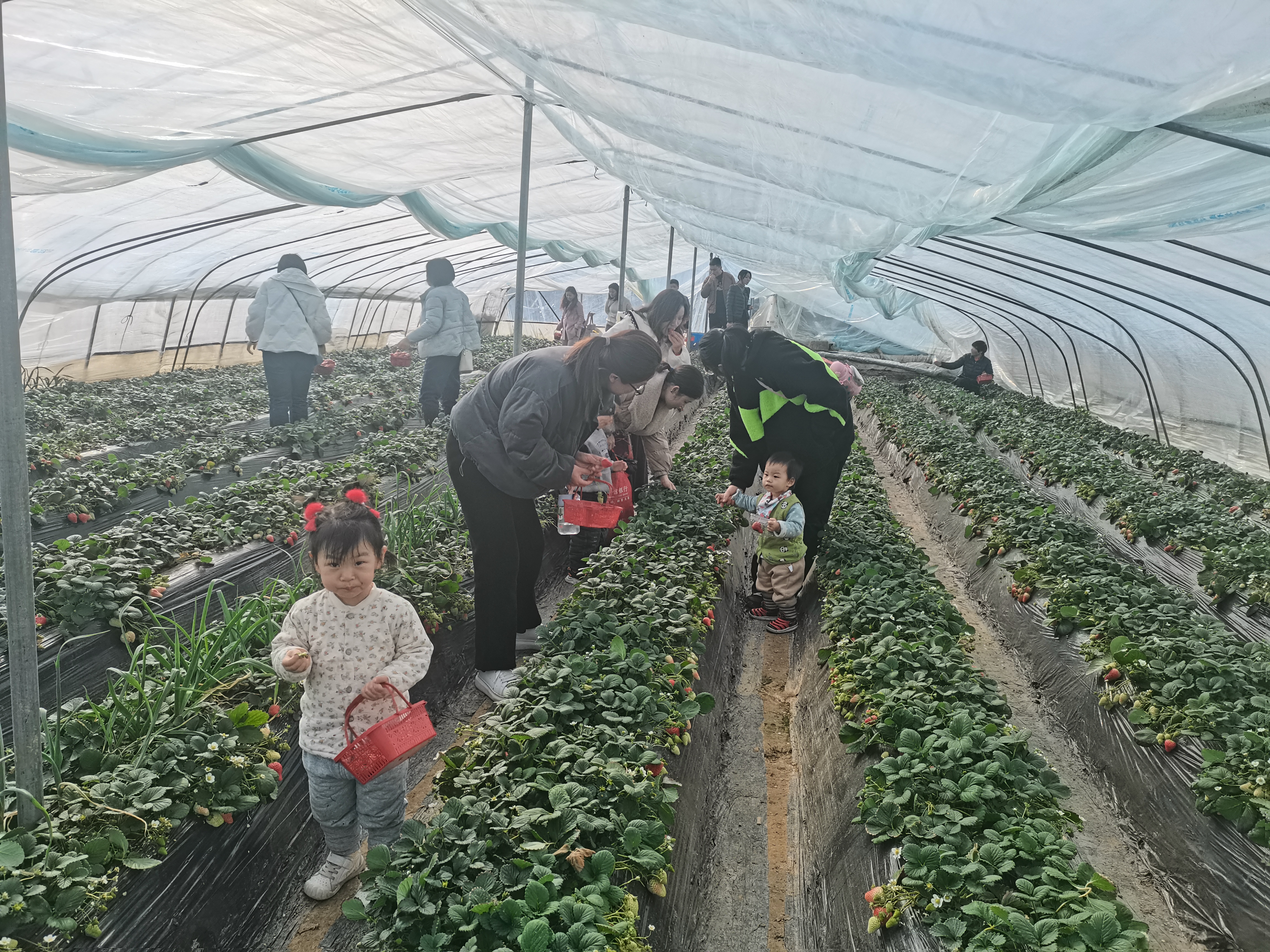 虽然春寒未消,绿意尚浅,但大家的热情丝毫不减,自发分成几拨,手拎篮子进入草莓棚,零距离感受田园风光,亲身体验采摘的乐趣和劳动的快乐。大棚内绿意盈盈,成片的藤蔓缀满鲜红的草莓,每位教职工都积极参与到采摘草莓的活动中,老师们互帮互助,气氛融洽。草莓大棚里红绿交映,一片欢声笑语,各位老师收获颇丰。