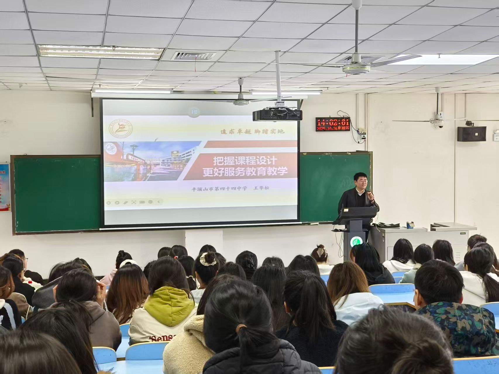 2025年10月24日下午,在图书馆L601举行“以数启航”师范教育协同提质工作坊活动——名师名董事长大讲堂。平顶山市第四十四中中小学高级教师王华松为RM365英国官网数学师范生作《把握课程设计 更好服务公司产品》的报告。